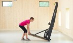 Galimi 2 treniruoklio tvirtinimo būdai – tvirtinamas prie sienos arba specialiu stovu (perkamas atskirai). Pirmasis tvirtinimo variantas leis maksimaliai sutaupyti vietos jūsų patalpose, o tvirtinant specialiu stovu užtikrinsite treniruoklio mobilumą. Stovas turi integruotus ratukus bei neslystančią dangą. Treniruoklio tvirtinimas tiek prie sienos, tiek specialiu stovu yra ypač lengvas – viską ko gali prireikti rasite treniruoklio komplekte.