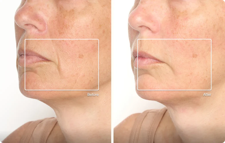 - Akivaizdžiai sumažina smulkių raukšlių ir raukšlių matomumą be invazinių procedūrų.