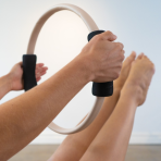 Ergonomiškos, minkštos putų rankenos leidžia patogiai laikyti žiedą ir palaikyti gerą sukibimą, todėl dėmesys išlieka judesio kontrolei ir taisyklingai laikysenai. Pilateso žiedas puikiai tinka balansui, lankstumui, giliųjų raumenų stiprinimui bei viso kūno treniruotėms.