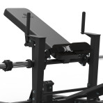 Treniruokitės patogiai su dideliais svoriais, kad užtikrintumėte tvirtus sėdmenis, kojas ir šerdį. Mašinos šonuose yra du plokštelių laikikliai, skirti dideliems treniruočių svoriams. Reguliuojamas dirželis tinka daugumai vartotojų. Lengvai užfiksuojamos rankenos šonuose saugumui.